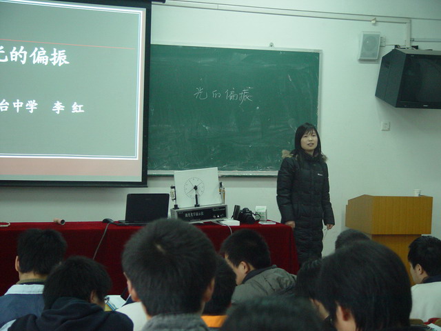 我校高二的李红老师对全市的公开课《光的偏振》难度极大,从来没有哪位老师开过这节课,但李老师用她丰富的专业知识,引导学生从生活入手,逐步上升为理论,最后再拓展到生活中去,课堂高潮迭起,令到会老师赞不绝口。