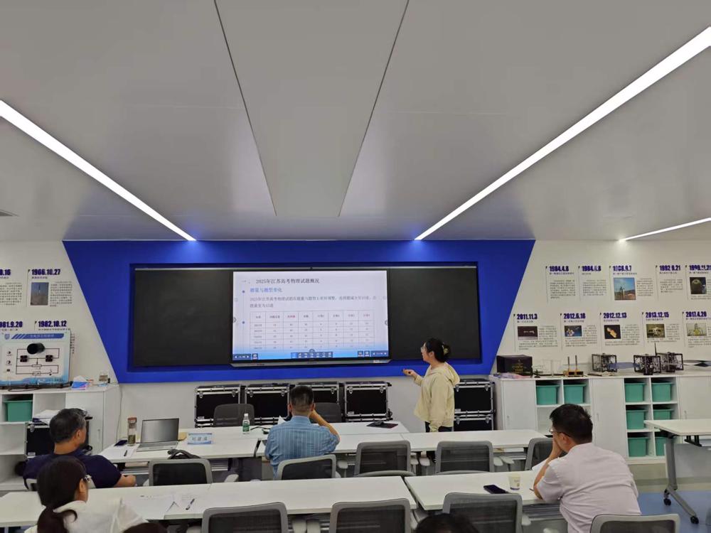 8月18日雨花台中学两部物理组齐聚一堂招开2025年高考试题研讨会,分析2025年江苏物理高考试题,寻找高效复习策略,紫荆校区2025届高三物理备课组长郑明春老师、2026届高三物理备课组长黄晓燕老师、岱山校区2025届高三物理备课组长袁家文老师、2026届高三物理备课组长郑柏浪老师分别作了发言,最后专家刘建成老师做了讲座。