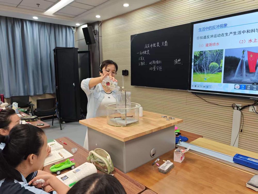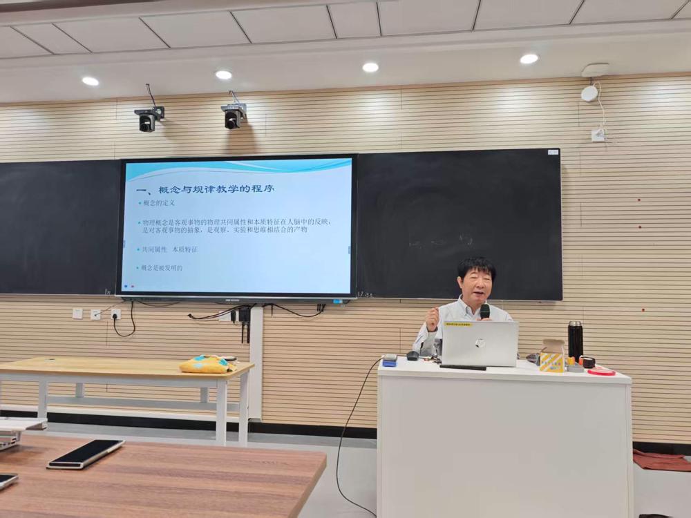 9月19日上午,南京市高一高二物理教师齐聚我校,就概念教学有效性进行热烈研讨,我校曹豆豆老师开设《自由落体运动》、张雪晴老师开设公开课《反冲运动 火箭》、唐保东老师开设讲座《从概念教学有效性探讨动量守恒定律定律的教学》,几位老师的公开课和讲座都获得了良好反响。本次活动有幸邀请到天津市物理教研员朱行建教授为大家开设讲座《素养语境下高中物理概念规律有效教学探索》,报告学术性强令人受益匪浅。