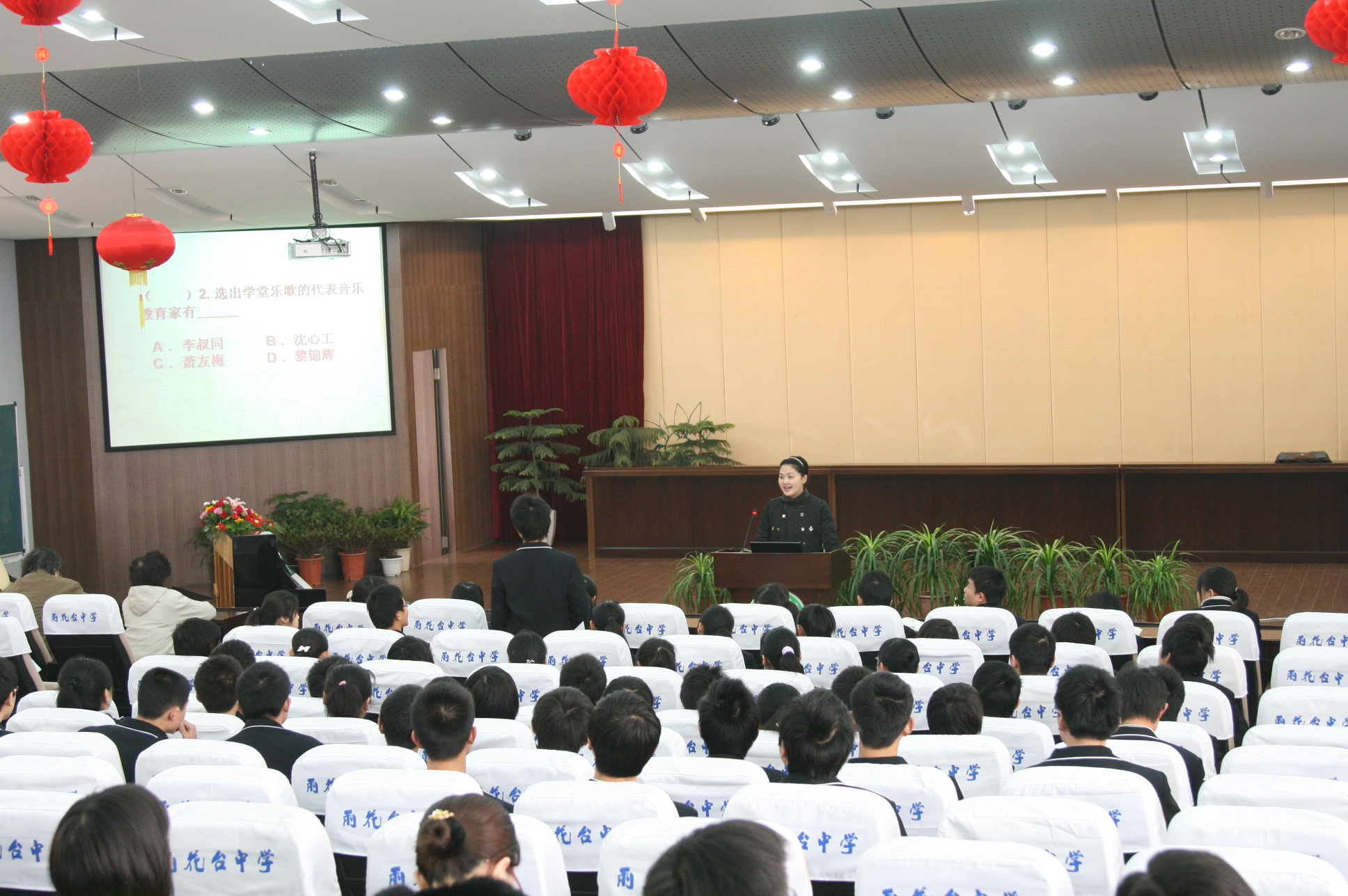 09年3月10日上午,在春意盎然的季节里,来自全市的近200多位音乐教师齐聚我校和谐厅,参加南京市音乐教研活动。我校韦伟和一中共有2位老师开设展示课,尤其是我校的韦伟老师开设的“学堂乐歌”更显出的扎实基本功,课堂上学生表现出较高的音乐素养,体现以学生为主体及探究式学习的新课改理念,让学生身临其境,融入课堂,受到了听课老师和教研员的高度评价。
