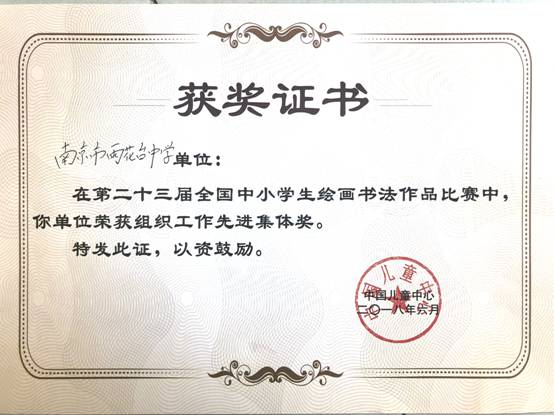 我校在第二十三届全国中小学绘画、书法比赛获“组织工作先进集体”称号