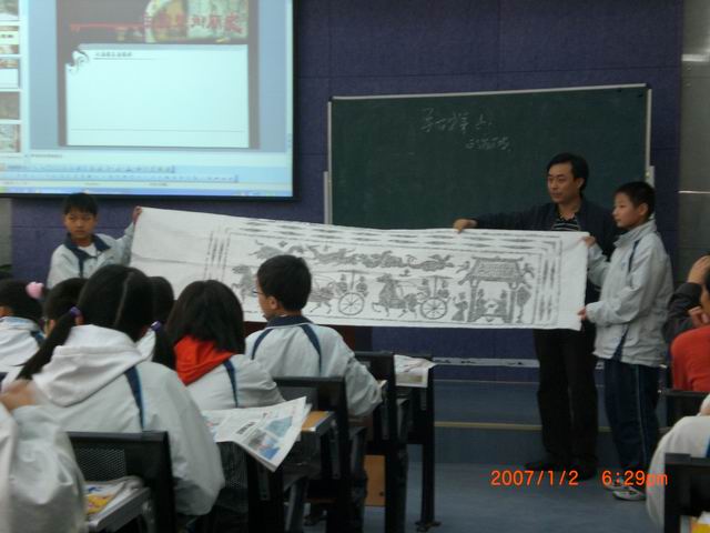 27日上午,全市美术教研活动——“市优青展示课”在我校成功举行!我校的张春生老师开设的一堂《寻古探幽—仿制画像砖》展示课,内容新颖、丰富,学生活动紧扣主题,教师示范美轮美奂,展现了较强的美术专业的功底,受到在场听课教师的一致好评。