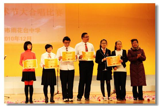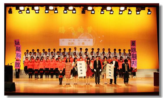 各班级通过近半个月的认真排练、精心准备,营造了“班班有歌声、人人颂祖国”的浓郁氛围。高一年级的12班级组成6个表演单位参赛,每个参赛队演唱2首歌曲,《腾飞的梦》——雨花台中学校歌为必唱曲目,《我的中国心》、《爱我中华》、《中国军魂》一首首深情无限、耳熟能详的爱国主义歌曲,透过高昂嘹亮的嗓音和催人奋进的旋律,表达了同学们对革命先烈的缅怀和感恩,对祖国母亲的无限热爱,抒发了他们立志报国的拳拳之心。最后,高一(4)班和(6)班夺得本次大合唱比赛的一等奖,高一(5)班、(7)班、(3)班、(12)班获得二等奖。大赛还特设最佳组织奖、最佳表演奖和最佳指挥奖,分别由:(5)班、(7)班、(4)班、(6)班和(12)班吕梦雪同学夺得。