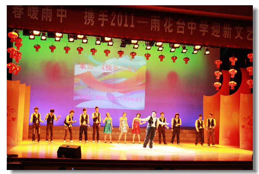 1229下午,学术会堂内流光溢彩、灯火辉煌,歌飞扬、舞翩跹,“春暖雨中,携手2011迎新文艺演出在这里隆重举行。学校领导、全体教职员工及家属、部分学生及家长代表共同观看了表演。校管乐队的合奏《友谊地久天长》和校合唱团的合唱《腾飞的梦》,拉开了2011年迎新文艺演出的帷幕。来自教师队伍的配乐诗朗诵、青春魅力操,女教师的舞蹈《江南雨巷》,男教师的联唱《江湖笑》,艺术组老师的《为祖国干杯》等节目依次精彩上演;学生们的舞蹈、竹笛、萨克斯风,古筝、街舞、小提琴纷纷闪亮登场,大家呈现了一场精彩绝伦的视听盛宴。一曲优美的《难忘今宵》,将演出推向了高潮。2011,新年的脚步已渐渐走近,“十二·五”的蓝图已经描绘,让我们燃烧用于开拓的激情,让我们以满腔的热情去迎接新的希望。