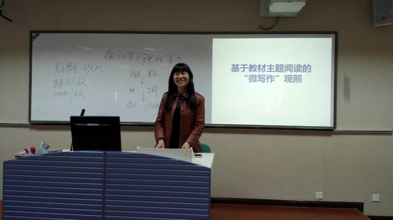 首先是顾杨梅老师执教微写作课——《循因问果见理性力量》,在师生对于一个现象的追问中,在场的每一个人都感受着思维的乐趣,见证了理性的力量。接着,教师发展处梅岚主任为全体语文老师开展了题为《基于教材主题阅读的“微写作”观照》,她用自身的做法启示老师们如何处理好教材和微写作的关系,也让大家更加认识到微写作应该成为语文生活的新常态。最后语文教研组组长武霞老师总结此次活动并提出,让微写作唤醒学生的心灵,点亮老师的生活。