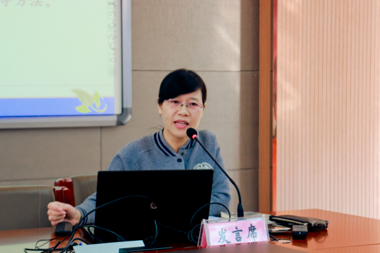 接着,梅岚老师在音乐教室开设了《高中基础年级“语文主题学习”的实践性研究》的讲座。梅老师给大家介绍了主题阅读的概念、研究背景、研究现状和研究价值,并对研究的内容和方法作了重点的阐述,同时还总结了阶段性的研究工作。梅老师呼吁大家广泛阅读、深度阅读,拓展教材外延,指导学生提升阅读能力,丰富学生的精神世界。