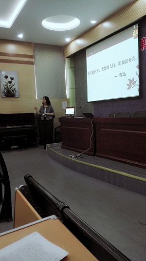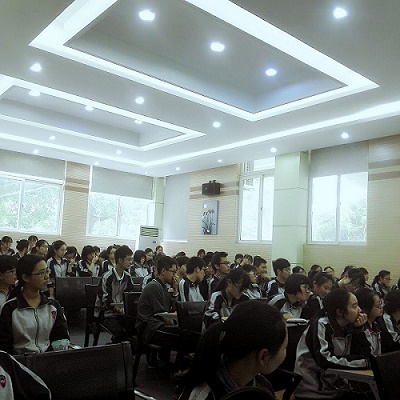 5月31号下午,高二语文组的朱丽老师在音乐教室开展了关于读书和写作的讲座。讲座的名称是“漫谈读书和写作”,朱老师围绕一个“真”字,告诉大家要真读书,真思考,真写作。在讲座中,朱老师列举了大量生动的例子,有中外诗歌,有小说散文,还有书籍和电影的对照,有自己的读书体验,也有同学们的习作,大家听得兴致盎然,受益匪浅。