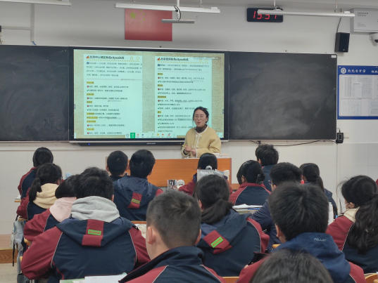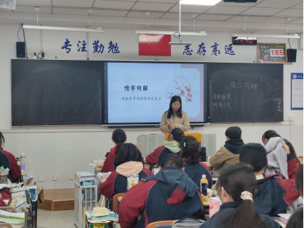 雨花台中学岱山校区的王子秋老师在高三(1)班开展了《情字何解---诗歌鉴赏之抒情方式复习》课堂教学。