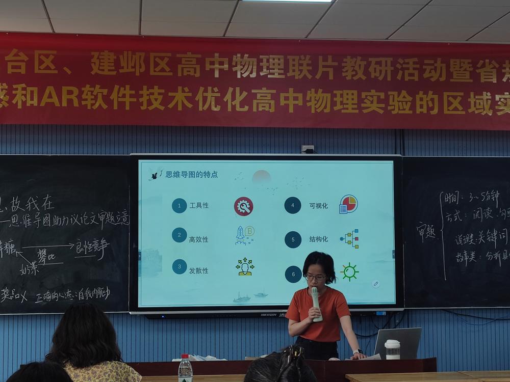 本次教研活动主要包括以下内容:南京一中实验学校的徐婷婷老师在高一(6)班开展了《向思想更深处漫溯——思维导图助力议论文核心概念》课堂教学;雨花台中学岱山校区的夏思琦老师在高二(7)班开展了《我思故我在——思维导图助力议论文审题立意》的课堂教学;板桥中学的万云香老师微讲座《浅析思维导图在高中语文阅读教学中的应用》;雨花台区教师发展中心的杜新建校长、杨婷老师以及董健老师对上述课堂进行了总结点评。