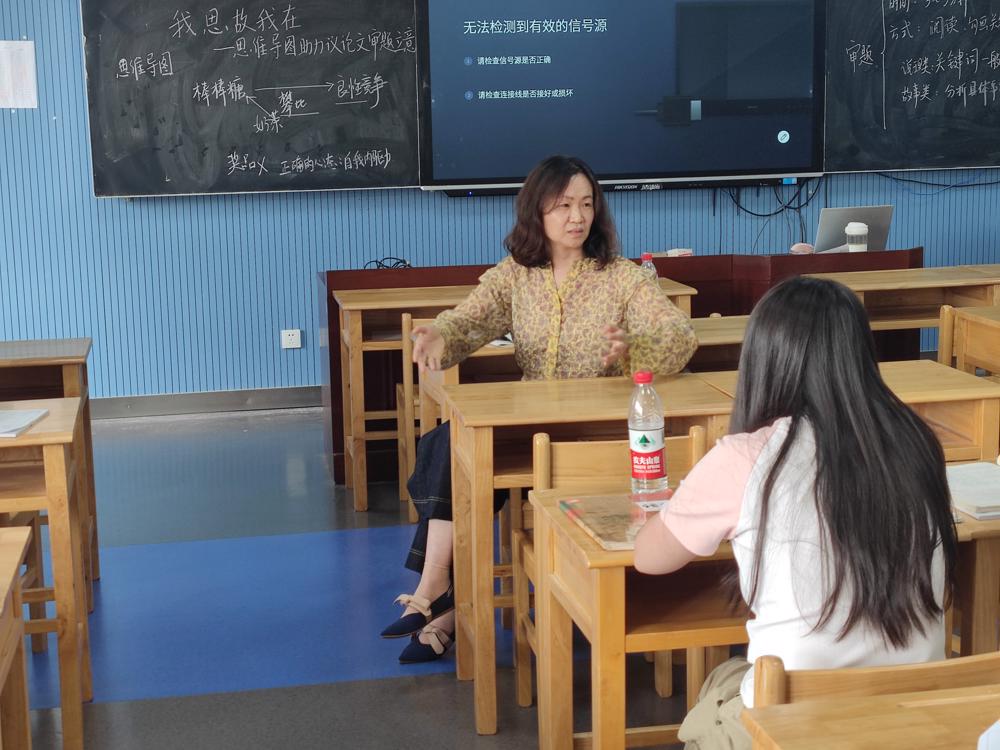 活动从13:50开始,徐婷婷老师进行了《向思想更深处漫溯 —— 思维导图助力议论文核心概念》的课堂教学。徐老师以学生熟知的游戏为切入点开展课堂教学,充分调动了学生学习兴趣,课堂气氛热烈!紧接着,通过实际案例呈现出学生在阐释概念时容易犯的错误,并鼓励学生发散思维,在组内积极讨论讨论,归纳总结阐释核心概念的有效方法。基于此,呈现出高考真题,引导学生运用思维导图深入剖析议论文的核心概念,帮助学生搭建清晰的思维框架,为写作奠定坚实基础。最后,徐老师布置了课堂限时训练,让学生在练习中再次巩固本节课所学。