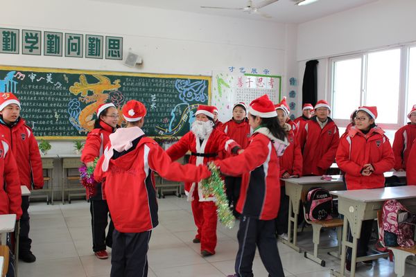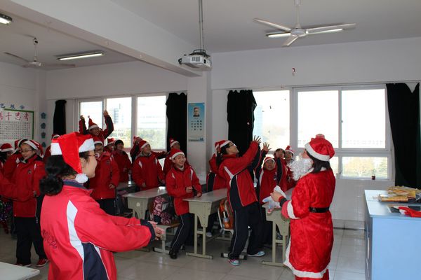 12月23日中午,英语教研组长杨学兰老师装扮成“圣诞老人”,和初一年级部王勇主任、初一部分教师巡回到初一年级各班级,观看了各班的精彩英语节目,并向各班同学发放了“圣诞”礼物。各班级的英语节目各具特色,有经典英文歌曲合唱、英语歌舞表演、英文诗歌朗诵。同学们对这样的活动表现出极大的兴趣,活动让同学们充分享受“说”英语的乐趣。此次活动为本届英语节划上浓墨重彩的一笔。