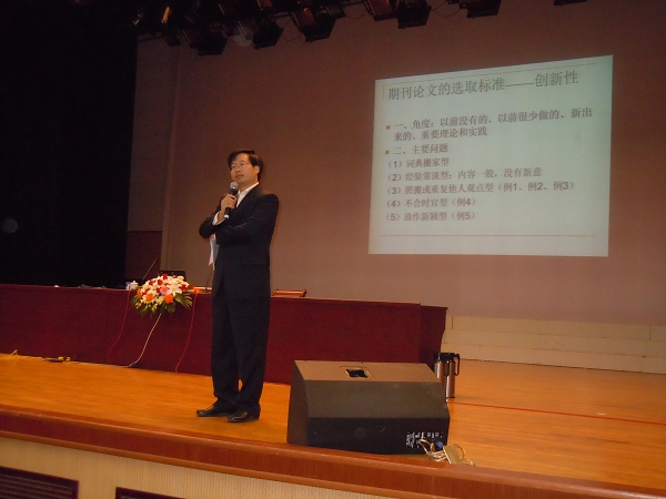 今天上午南京市英语教研活动在我校学术会堂举行。近600位英语教师聆听了《中小学外语教学》副主编赵东亮老师开设的讲座——《初高中英语老师如何写好论文》。赵老师以简洁而生动的语言谈论期刊论文的选取标准,即“创新性、学术性、科学性、实用性、规范性”。之后的互动环节,各校英语教师踊跃发言,积极探讨,气氛活跃,赵东亮老师对教师提出的各种疑问作了详细的解答,并给出了指导。此次教研活动使老师们明确了期刊论文写作的方向,对于提高教师论文写作水平具有指导性意义。