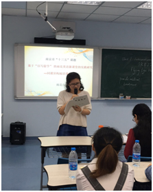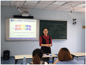 我校的英语教研组长、初二英语备课组长刘浏老师给各位老师们带来了题为《意识载课堂 实践吐芬芳》的讲座。刘浏老师从自身教学心得和教研之路出发,分享了几节优秀课堂的设计案例。这些英语课堂从阅读课型到复习课型,无一不彰显着英语课的核心素养,英语教育者的人文情怀。刘浏老师的认真钻研作风和工作激情让在场老师动容。