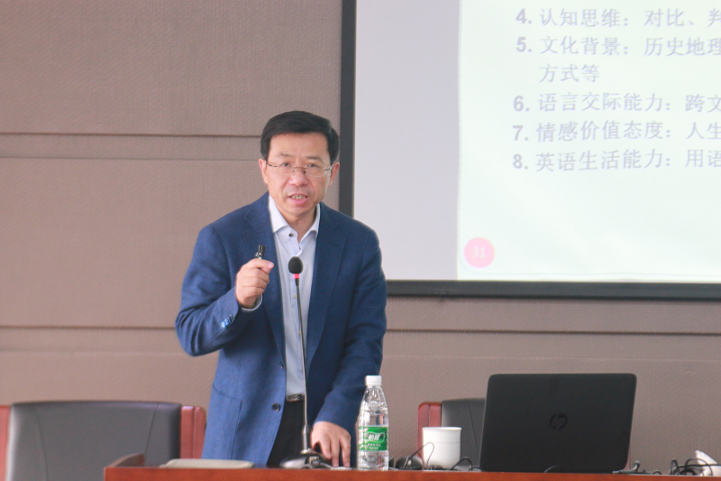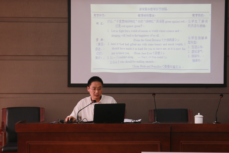 江苏省教研室何锋教授作了题为《基于标准的高中英语有效教学》的主题讲座,强调着力培养学生的语言能力、文化理解等英语学科核心素养。我校和南外、田家炳高中、扬子中学等四所获得市先进教研组的组长发言,分别围绕课堂活动、校本课程、团队建设和课程基地等主题作了经验介绍。