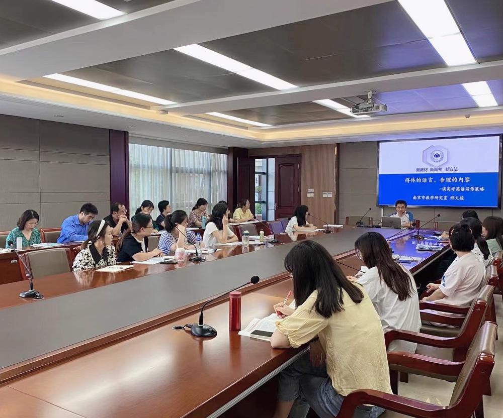 为了提高英语课堂教学效率,提升英语教学质量,促进教师自身的学习和教学水平的发展,我校英语教研组于9月27日上午开展了英语教研活动。本次研修活动主要围绕新老高三交流,也很荣幸邀请到南京市教研室英语教研员邢文骏老师给全体英语组进行了写作教学策略的指导。
