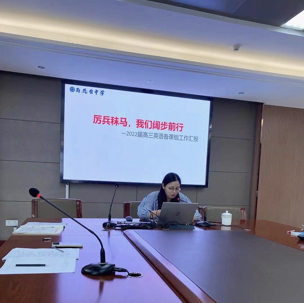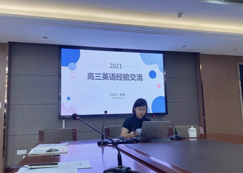紧接着,我校新老高三教师代表进行交流发言。现高三备课组长尤丽莉汇报探讨了目前高三工作情况以及接下来的工作安排。尤老师结合了雨中学生的学情以及期初考试的结果,具体阐述了目前高三备课组听力、阅读以及写作的教学侧重点和做法。尤老师指出10到11月计划分层推进新授教学和匹配9-11模块一轮复习,促进学生规范听课、规范笔记、规范作业、规范解题。11月到1月则主要围绕模块一到八的基础复习,备战一模。