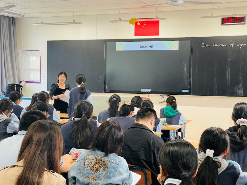 首先,褚静宜老师向大家展示了一节必修一第一单元的语法复习课。褚老师以一段“老友记”的视频导入,引导学生充分感受到简单句之美,再以丰富多变的练习方式复习操练了本单元的重点语法内容—句子结构,同学们积极参与,沉浸式复习了本单元的语法知识,并能够运用到语篇中去,达到了非常好的复习效果。