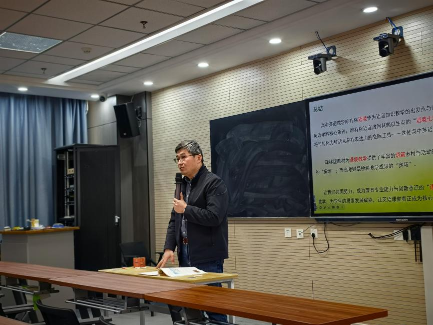 活动伊始,南京市高中英语教研员邢文骏老师发表了主题讲话。他着重强调了在当前英语教学改革背景下,将语言知识教学置于真实、丰富语境中的必要性与重要性,为全天活动奠定了坚实的研讨基调。