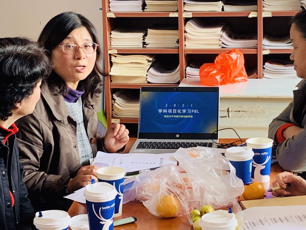本次集体教研分为两项议程。首先,由纪明月老师和周雪雪老师总结并阐述高中政治部编版选择性必修一《当代国际政治与经济》的新教情。纪老师结合教学实际,将新教材与旧版人教版教材的知识体系进行对比,突出介绍不同之处。周老师把握教材编写理念,侧重阐述新教材的价值导向和教学特点。其次,由组长茆国芳老师进行《学科项目化学习PBL》专题培训,茆老师从概念、演变过程、具体学科案例等角度对项目化学习进行了介绍。