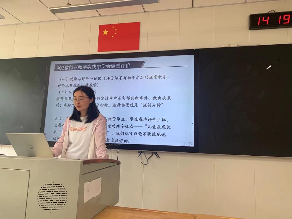周雪雪老师继续带来钟启泉教授的《课堂研究》一书的读书分享。结合主题,周老师以“打开课堂评价的潘多拉魔盒”为题,重点分享了何为课堂学习评价以及如何锻造教师的评价素养两个问题,并结合实际学科教学中的问题和片段,探讨了如何提高思想政治学科的学习评价实效。