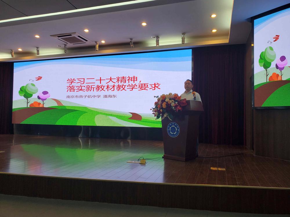 随后,南京市燕子矶中学的潘海东老师以《学习二十大精神,落实新教材教学要求》为题开设了专题讲座。潘老师在解读二十大精神的基础上,提出了高中政治需要聚焦的几个话题:农村、高质量发展、法治、中国式现代化、绿色发展。此外,潘老师还在分析新教材关于二十大的新修改的基础上,凝练了相关的情境素材,并就微专题的开设给出了序列化、综合化、计划性、针对性的建议。最后,贾玮老师对此次教研活动进行了总结并就下一阶段南京市高三政治教学作出规划。
