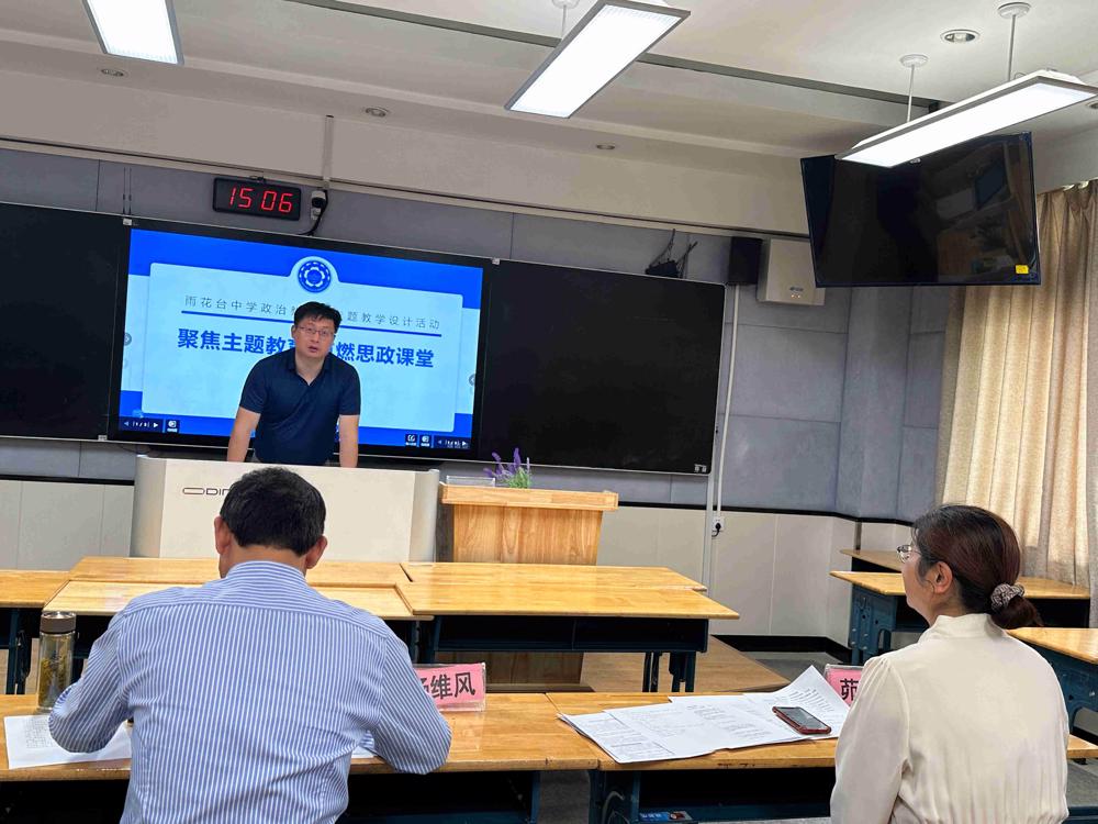 为深入学习、宣传和贯彻党的二十大精神,推进二十大报告中新论断、新理念、新提法更好的与高中思政课有机结合,开展习近平新时代中国特色社会主义思想主题教育,让党的最新理论创新成果“带着热气”进教案、进课堂、进学生头脑,在校党委的领导下,雨花台中学高中政治教研组于2023年5月18日举办了专题教学设计活动。