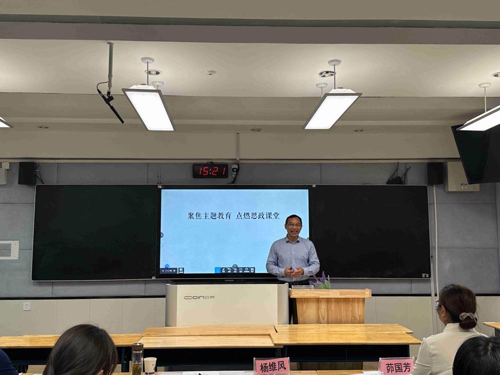 活动最后,杨维风教授做了以“聚焦主题教育,点燃思政课堂”为主题的微讲座。他从领悟会议精神、联系教材内容、转变学习方式、创新活动形式四个方面进行了详细阐述,围绕课程结构和模块关系,他建议老师们从生活中创新,在创新中激活课堂,真正从小课堂走向大社会,在发现和解决现实问题中培育学生学科核心素养。
