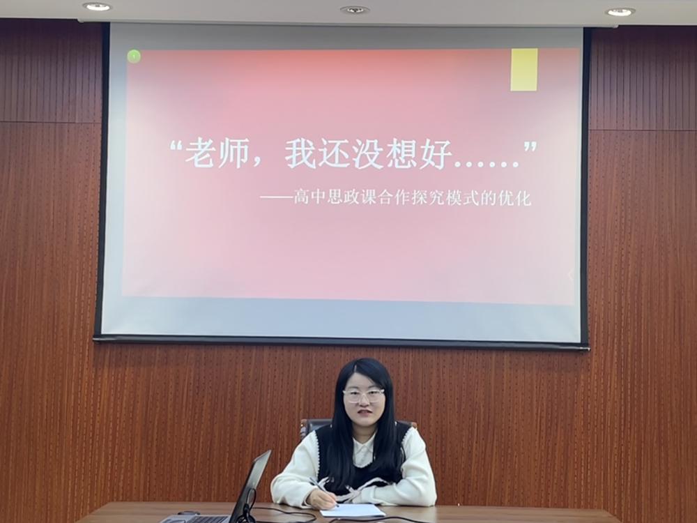 会上,张一娃老师进行了以“高质量教学背景下高中思政课合作探究模式的优化”为主题的研讨发言,从激活“议与思”的动能、强化“器与道”的设计、掌握“满与白”的艺术三方面,阐述了如何优化合作探究模式。董芳老师在总结中强调,在日常教学中要坚持多思考多积累多动笔,以更好地提升教学质量。