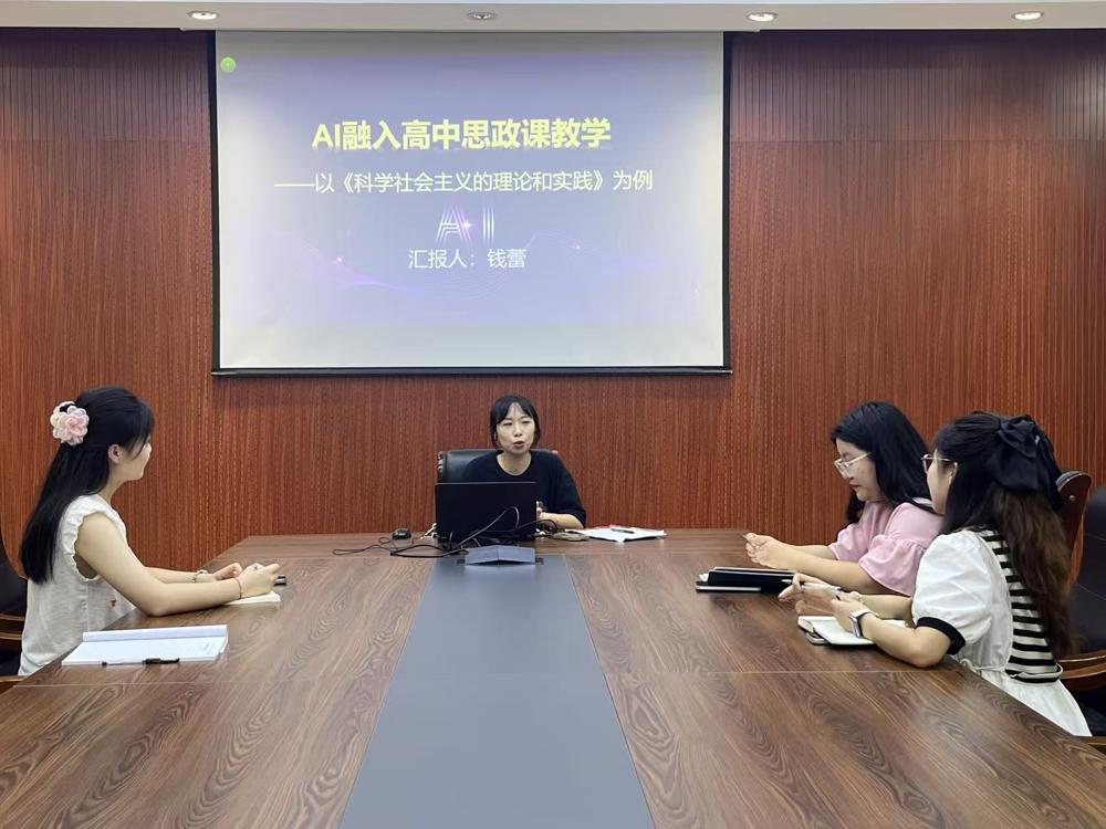 2025年9月16日,雨中岱山政治教研组进行了以“人工智能与思政教育融合创新”为主题的教学研讨活动。活动中,钱蕾老师作专题分享,以《科学社会主义的历史和实践》为例,生动展示了人工智能技术赋能课堂教学的实践路径。