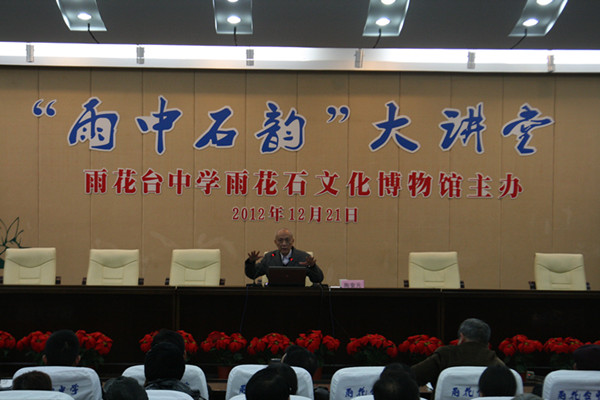 我校地处产雨花石的砾石层之上,雨花石、雨花台、雨花台中学三者之间似乎有着冥冥中的联系。雨花石文化博物馆作为我校特色创新工作的一张名片,自开馆以来就收到了社会各界的广泛关注。本次顾问研究员年会、第七期石展开幕、“雨中石韵”大讲堂三个活动的成功举办不仅为我校雨花石文化博物馆2012年的工作画上了一个圆满的句话,更为2013年的工作打下了良好的基础。预祝雨中的雨花石文化博物馆蒸蒸日上!