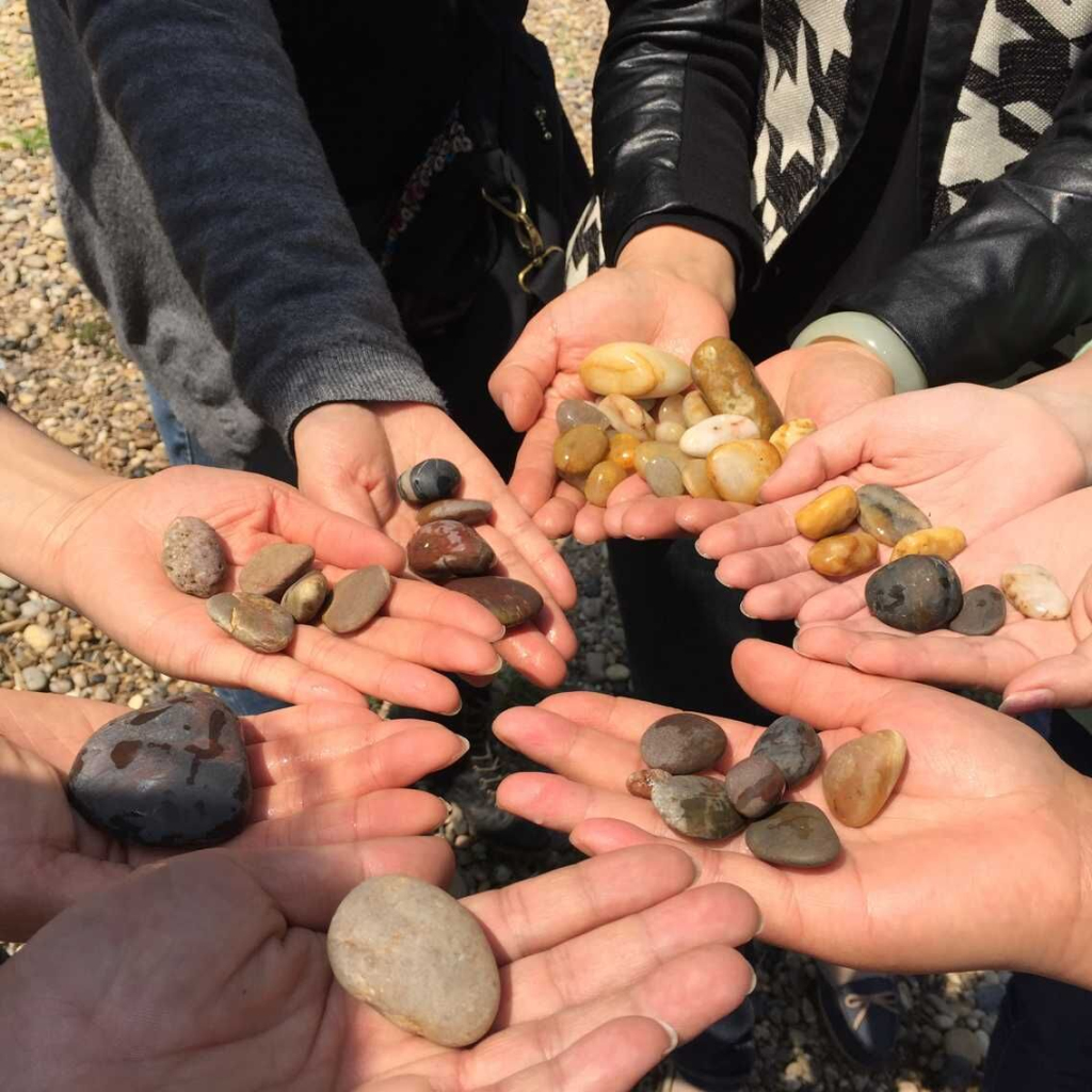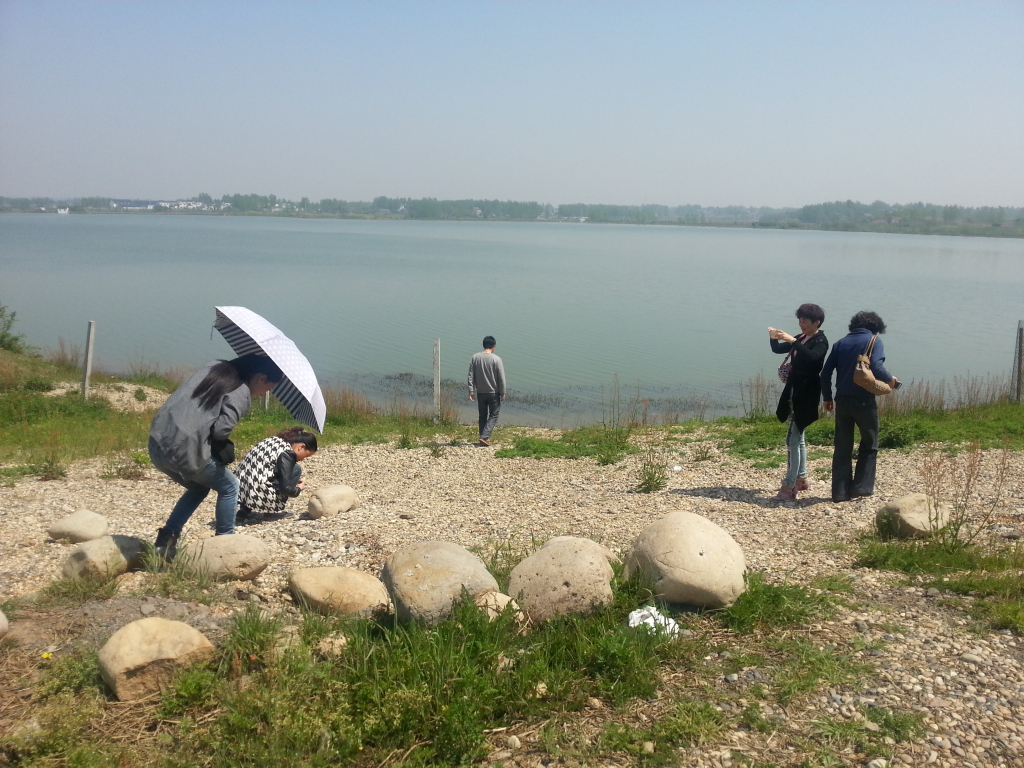 在水库边,大家认真的寻找那遗落在河滩上的美丽石头,不时的发出惊叹的声音,为这大自然的神奇而兴奋。