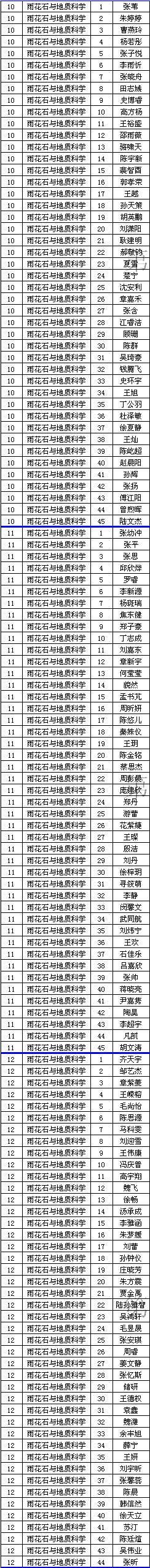 雨花石与地质科学选修课学生名单(10班-12班)