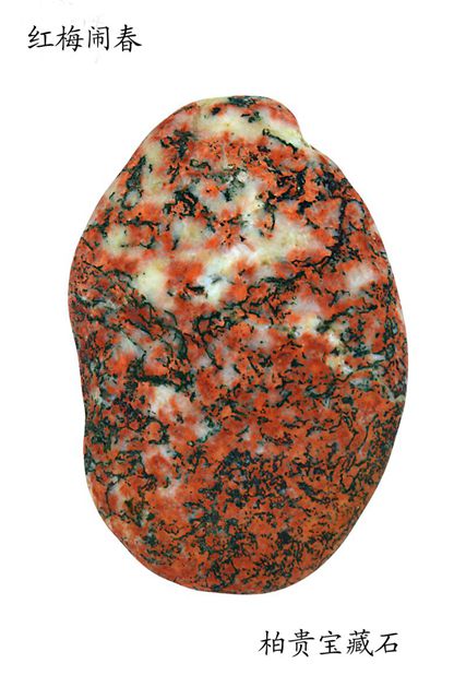 后来又被要求看红楼,通灵宝玉则也是雨花石的代表,则又被雨花石所折服。后来参观了雨花台中学的雨花石馆,自己深深被那一块石头吸引了,那就是红梅,它被摆在最不起眼的角落,静静地,貌似无人问津,但是像是有一种力量吸引着我,我走到那个角落,一块石头静静地躺在那,椭圆形的形态,从右下角延伸出一只红梅,渐渐地覆盖了整个石头,如血一般的红色,一下子吸引了我的眼球,栩栩如生的有种感觉叫只可意会无法言语,我想说的大概就是我当时的感觉吧。